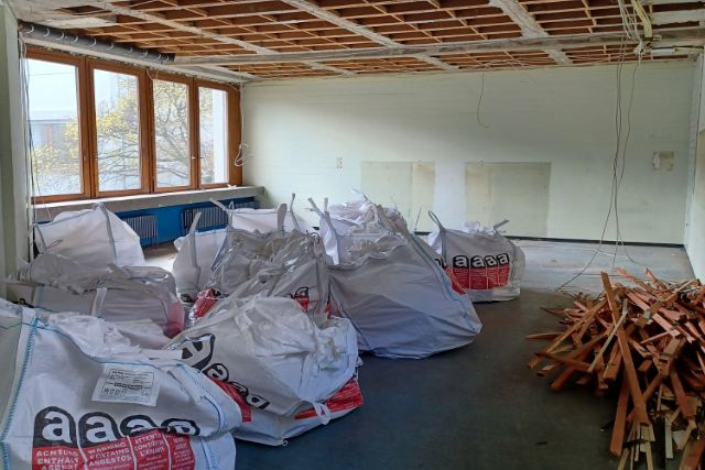 Hier entfernen wir hauptsächlich Rohrisolierungen, Trittschalldämmung unter Estrich oder Isolierungen von Lüftungskanälen. Aber auch Abbruch von Trockenbauwänden kann alte gefährliche Mineralwolle freisetzen.